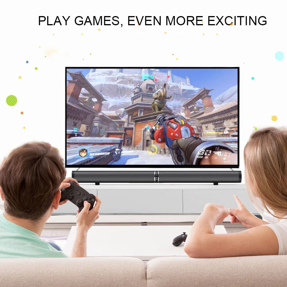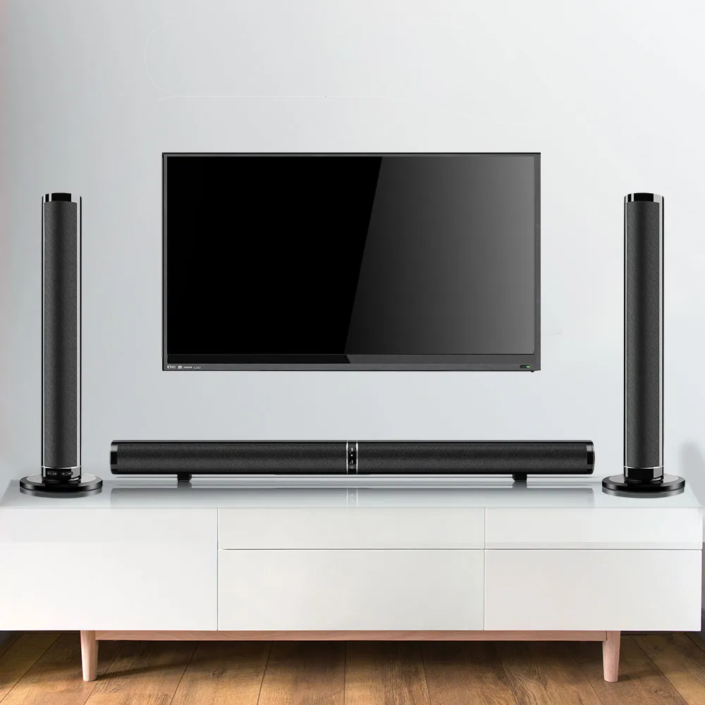 Ausgestattet mit sechs hochwertigen Breitbandlautsprechern und zwei Bassmembranen liefert diese Soundbar einen satten Stereo-Surround-Sound mit tiefem Bass und klaren, lebensechten Klangeffekten – ideal für Filme, Konzerte, Sportübertragungen und Musik.